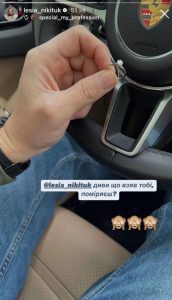 У своїх соціальних мережах Дмитро опублікував цікаву stories. На тлі машини Дмитро тримає каблучку з великим діамантом. Обранець ведучої спочатку не став вдаватися в подробиці, а лише написав наступне: “Лесю, диви, що взяв тобі, поміряєш?”. На це знаменитість вже відреагувала емоджі у формі мавпи, які заплющують очі.