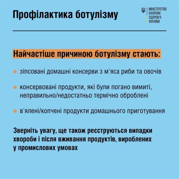 МОЗ публікує інформацію про причини ботулізму та рекомендації, як уникнути захворювання.