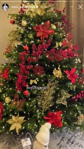 Так, у передчутті кардинальних змін у житті подружжя вирішило не сидіти, склавши руки. У своєму заміському будинку вони взялися за прикрашання оселі перед зимовими святами. І перш за все, поставили ялинку у вітальні. На гілочках помітно золоті та червоні прикраси. Серед декору також є бантики та декоративні гілочки й квіти. Доповнила новорічну красуню гірлянда.