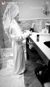 Ольга Фреймут разом із донькою зупинилася в одному з місцевих готелів. Ведуча в сторіз показувала, як 7-річна Євдокія у величезному халаті та з рушником на голові виконує у ванній вечірні процедури. На кадрах можна помітити, як донька знаменитості вже неабияк підросла.