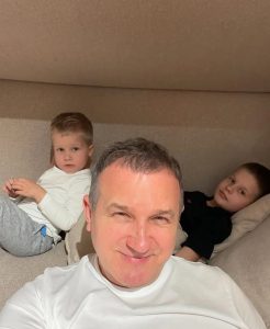 У своїх соціальних мережах він поділився сімейним контентом. На знімку Юрій зі своїми синами Данилом та Іваном позують на дивані. Батько залишився синами наодинці, поки мама поїхала у робоче відрядження.