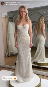 До речі, наступного дня переможниця “Холостяка-13” знову продовжила інтригувати підписників. Вона показалася в салоні суконь, де, зокрема, були й весільні. Волонтерка приміряла розкішне вечірнє вбрання кремового кольору.
