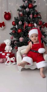Так, зіркові батьки влаштували для 10 місячного малюка новорічних свят. Вони одягнули Оскара в костюм Санта Клауса, який складався з комбінезону, черевичків і традиційної шапочки. Він попозував на тлі прикрашеної ялинки та подарунків. Результатом фотознімання виконавець поділився у фотоблогу.