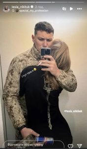 Парочка позувала на камеру в ніжних обіймах. Телезірка показалася на фото у футболці, ймовірно, нареченого, на якій був зображений тризуб. А чоловік був одягнений у звичному для себе одязі – військовій формі.