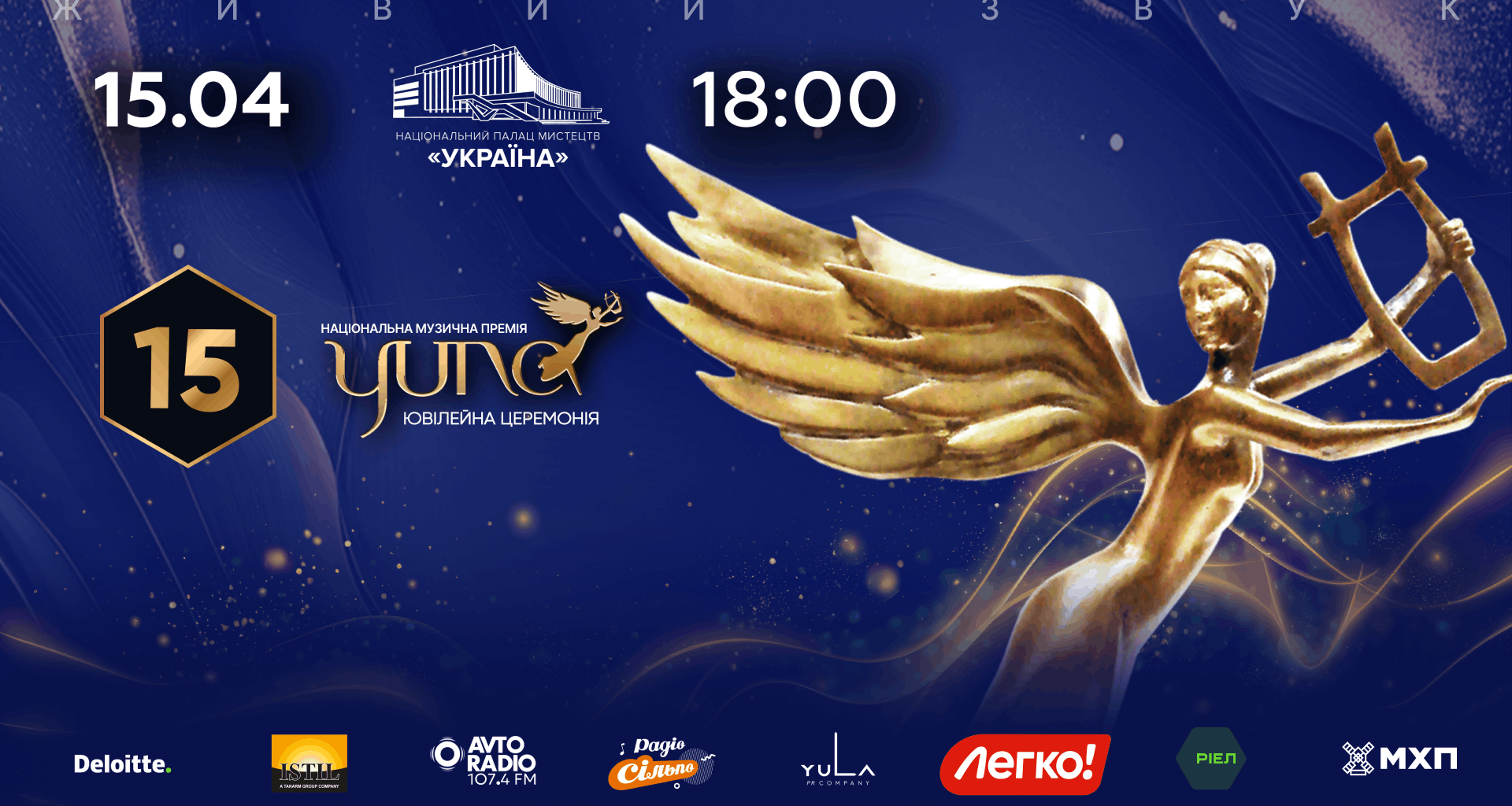 Вже 15 квітня 2026 року в Національному палаці мистецтв “Україна” відбудеться ювілейна церемонія нагородження YUNA. Стали відомі імена артистів, які виступлять на події, та почесних гостей, які вручатимуть нагороди Національної музичної премії YUNA.