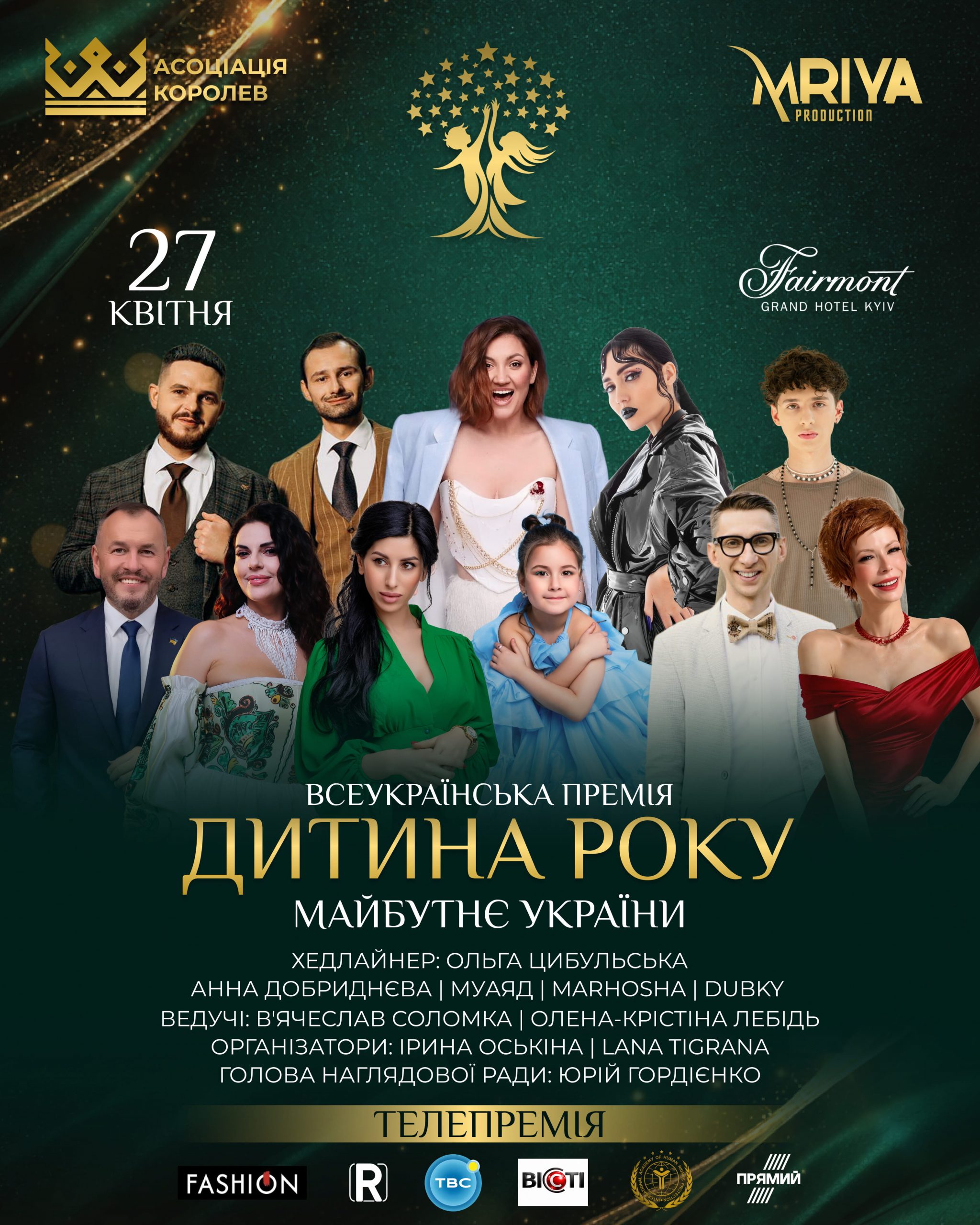Ведучими вечора стануть Слава Соломка та Anna Belle, а блок премії «Дитина року» модеруватиме Олена-Крістіна Лебідь.