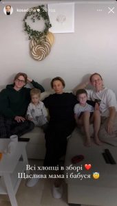 У своїх соціальних мережах Катерина повідомила, що її родина вперше за тривалий час зібрались разом на Різдво. Зокрема, до України зі США повернувся її старший син — 22-річний Ілля. Хлопець разом зі своїми молодшими братами Данилом та Іваном попозували на дивані у батьківському домі. Поруч з ними також сидить їхня бабуся та зіркова мама.